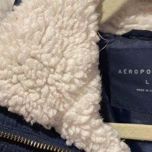 Like new Aeropostale vest with fur Sherpa hood. Size L. Navy colored.
