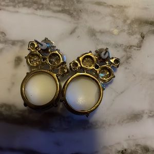 Large sized pearl like gems and rhinestone earring set. The pearls are a little larger than the size of a dime. They have rhinestone crystals to accent them. They were a gift and I have never worn them. There are no missing pieces and both of the earrings include a backing. The back side is flat and not rounded like the front of the pearl. See photos & video. Bundles of any 2 or more items are 20% off. Mix or match the categories. Comment with any questions. I am open to offers.