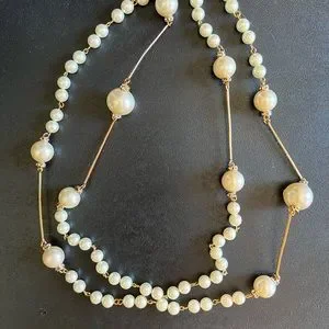 Chanel Vintage Pearls 2001 P Long Strand Strassed Details Pristine