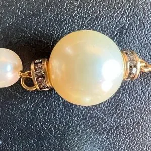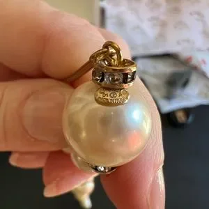 This beautiful set of pearls is from 2001 Spring. It’s a classic piece with a bit of an edge. Strassed crystal beads adorn this necklace atop each large pearl. She is stamped and guaranteed authentic. Absolute pristine condition. Comes with box!