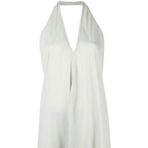 Rick Owens Lilies draped halter tunic in blue grey dinge colorway, US4/IT38. Very soft fabric - 70% viscose, 15% cotton, 15% nylon. Very deep v-neck, raw edge hem. Lovely top, just a bit too sheer/flowy and impractical for me. Rarely worn, very good condition.