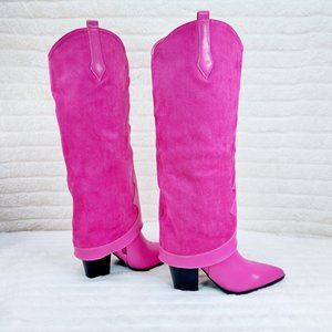 Branded Fuchsia Pink Skirted Fold Over Western Shark Knee High Cowgirl Boots