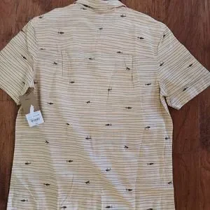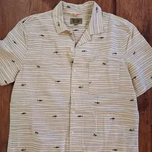New Foundry Men Shirt FISHING LURES Beige Cotton Linen Sports Fly Fishing Sz LT
