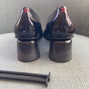 Halmanera Block Heels, Size 7 in Patent Black, Brand New