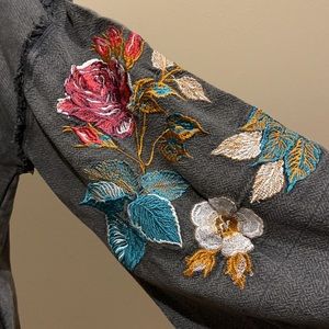 Bell sleeves with embroidered floral details