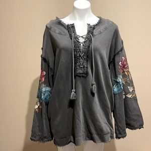 Free People Boho Embroidered Bell Sleeve Sweatshirt