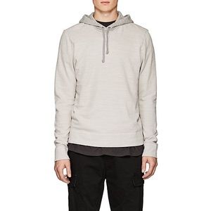 Concrete Dust Pigment beige & gray color. Long sleeve. Hooded with drawstring at neck. Pullover. 100% cotton. Made in the USA. Retail: $450.