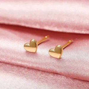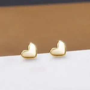 New 14k Yellow Gold/925 Silver Small Heart Studs