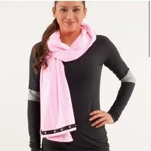 Lululemon Vinyasa Scarf, luon light material, moisture wicking. Excellent condition. Snaps. Can be worn any different ways.