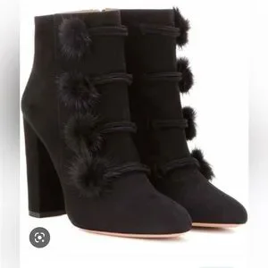 Aquazzura booties with mink Pom Pom’s