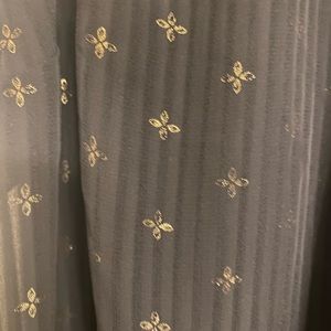 Like NEW! Only worn once. Gorgeous black and gold print tie neck sleeveless sheer blouse. Perfect with black cami underneath.