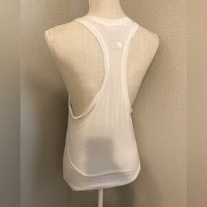 North face tank top white sheer oversized racerback wave hem super cute relaxed fit style perfect for layering on top of sports bra or with normal clothing for winter