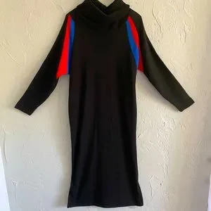 Vintage 70’s/ 80’s turtleneck sweater dress! Dress up with chunky belt, jean jacket and boots for a fun night out. Or dress for work adding jewelry and fun shoes or boots. Any way you dress it, you will sure to be a knockout! Size large. Pet free and smoke free home.