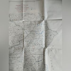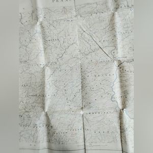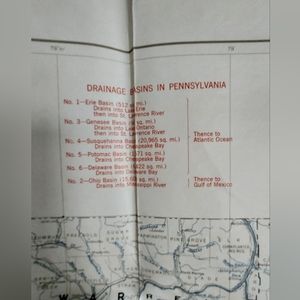 Offered for sale is an antique 1930 Map of Pennsylvania streams color map/poster. It measures 35" high by 57" wide.