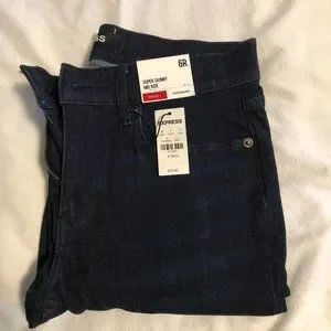 Express Jeans Size 6R Super skinny, Mid Rise, Stretch denim, dark blue