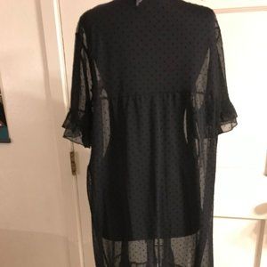 Divided Sheer Black Swiss Dot Dress or Nighty :) XL but roomy (see measurements) from H&M. This is sheer so could be worn as nighty or with a bodycon dress under it. Baby doll style dress. Measured lying flat: B= 52 in W= 60 in and L = 38 in. Worn twice. Excellent Used Condition. Smoke free, pet free home.