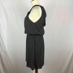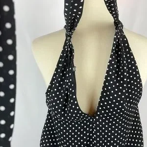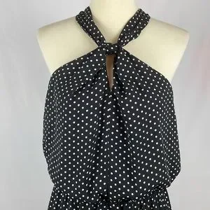 Express Black w/White Polka Dot Blousy Halter Dress w/Keyholes - Size Small