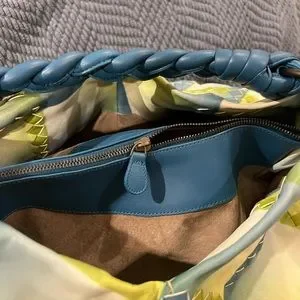 Large hobo bag…unique colors. Soft leather with suede interior. Middle zipper.
