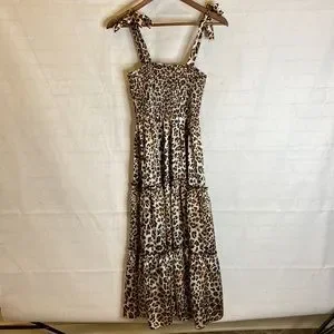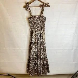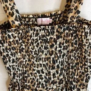 Pink Lily Leopard Print Smocked Bow Tie Dress