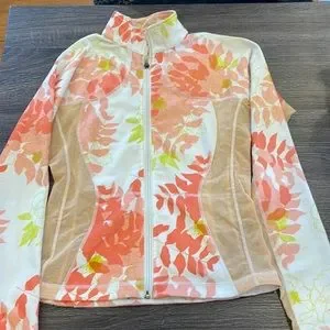 {Lululemon} Floral pink lime green zip up jacket Sz 6 little fuzzy fabric