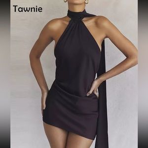 2023 Summer Elegant Satin Backless Mini Dress Women Gown Halter Sleeveless
