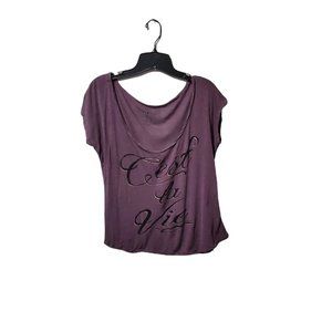 Fifth Sun Purple Short Sleeve Cest La Vie Round Neck Shirt Sz L