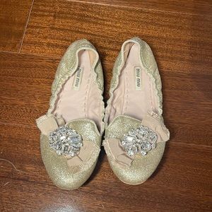 Miu miu glitter crystal ballerina flat