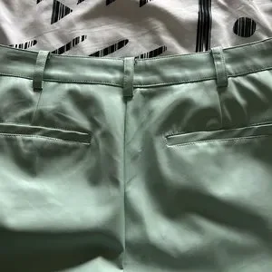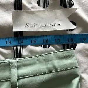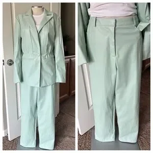 Fun and funky suits are my love language. This one is already unusual because of its color, but its faux leather feel takes it over the edge. I wore the suit once to an event at a museum, and laundered per instructions afterwards. The size is XL, but I’d recommend for a 14 or small 16. Bundle with the jacket for an even bigger discount! (Last photo is from New York & Company website.)