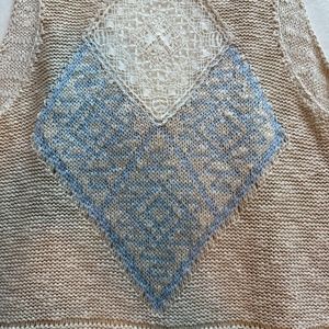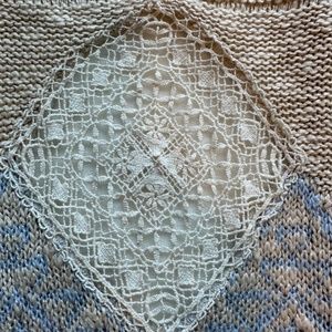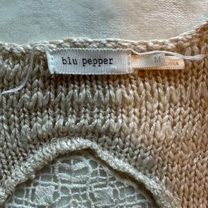 Blu Pepper Womens Boho Knit Cardigan Sweater Vest with Lace Accent Medium