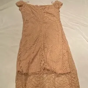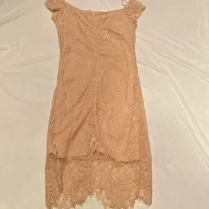 Love, Fire brand off the shoulder lace overlay blush dress. Worn once and in excellent used condition.