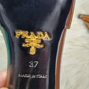 ladies Sexy Prada 4" high heels size 37 or US size 7. They are bronze in color and worn very little. original box and dust cover not included.