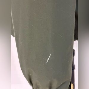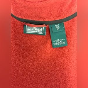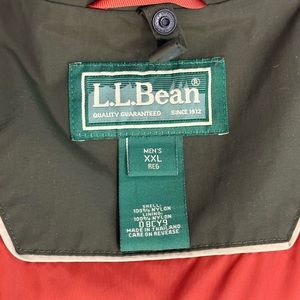 L L Bean Olive Green detachable fleece lined Men’s jacket hood rolls up into the collar jacket has Velcro adjustable wrists and zipper snap closer.