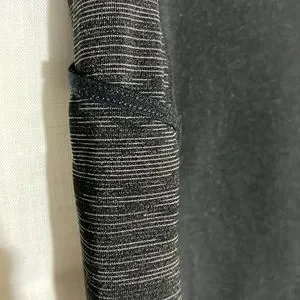 These workout pants are two-tone. They are in used great shape. They have a side pocket for your phone and a little pocket in the back for your money they do not have a size in them so I’m including measurements. From top to bottom, they measure 37 1/2 and the waist measures 16 across without stretching.