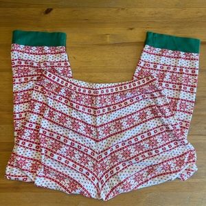 Carter’s 100% cotton Adult size large Christmas PJs with red snowflake design on white background with green ribbing. In good used condition. These were sold under unisex sizing on the Carter’s site.