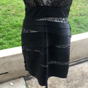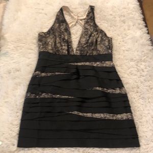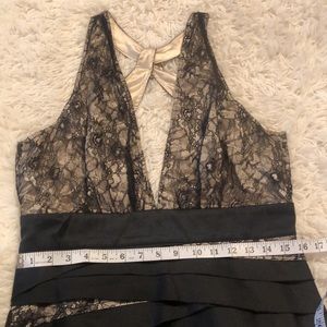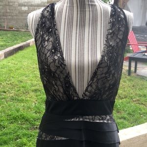 Stunning BEBE layered with satin and lace dress. Sexy Low deep V cut front.