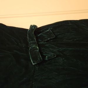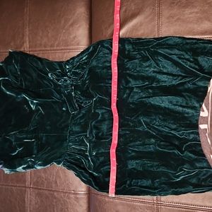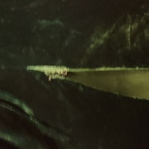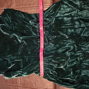Custom made green velvet gown! ✨️ Beautiful shiny velvet, deep forest green color!! Cut low in the back with a hidden zipper and split that stops at the back of the knee. Only flaw is stitching at top of split. see Pic.