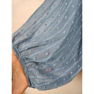 UMGEE Dusty Blue Swiss Dot Chiffon Tiered BOHO Tunic Top Size Medium NEW