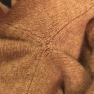 Valerie Stevens cashmere turtleneck in a camel / tan / light brown color ⋆100% cashmere; made in Hong Kong ⋆small hole repair underneath one armpit (shown outside and inside the sweater, + in comparison to underneath the other armpit). I never noticed it and forgot about it until now 〘 Sizing Reference 〙 ⋆model stats: 5’2, 32D, 36-28-36 ⋆measurements laid flat: bust 18.5”, waist 16.5”, length 21.5”