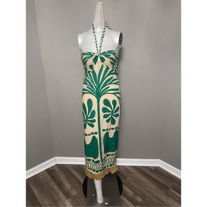 Johanna Ortiz's Ritmo Vivo midi dress is an artful summer staple. Made from fauna-printed cotton, it has a halterneck with beaded chain detailing at the front and is finished with a swishy, embellished hem.
