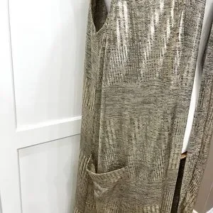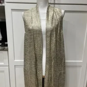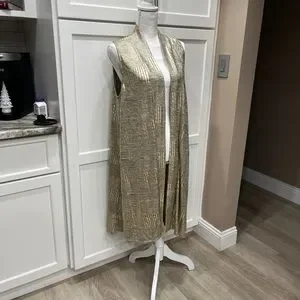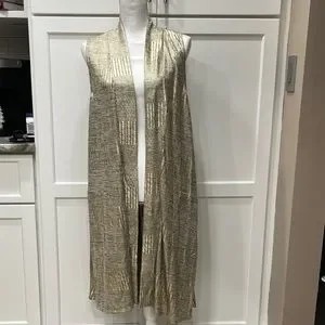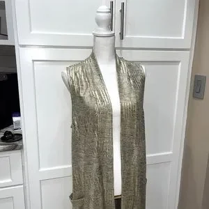 Expresso Long Gold Shine Vest with Pockets 97% Poly 3% Spandex Med or Large