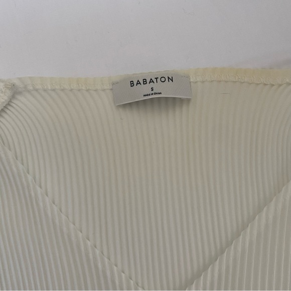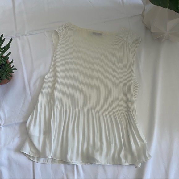 Gently worn, 7/10 condition. There is some discolouration at the back neckline on the inside, but not visible when wearing the shirt. This plissé-pleated blouse is made with a silky, lightweight fabric that looks beautiful, feels refined and keeps its shape.