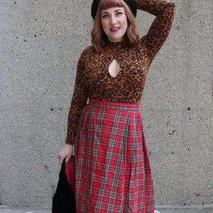 80s/90s taffeta a-line midi skirt in that classic red plaid we all love from Bianca