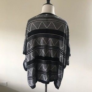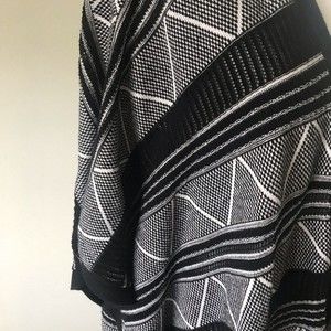 Ava Couture Black White Geometric Print Open Front Cardigan Sweater - Small