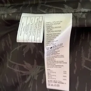 She’ll is 57% nylon & 43% polyester, lining is 100% polyester, filler is also 100% polyester