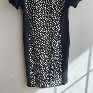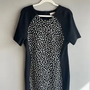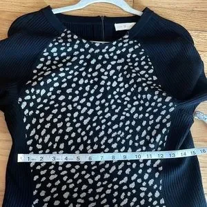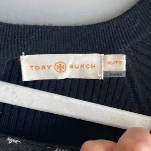 TORY BURCH Gemma Pony Dot Sweater Dress Merino Wool XL Stretch Dot Ribbed Black