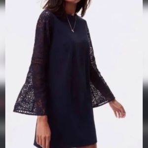 Navy Blue Loft Dress with Lace Bell Sleeves ๐