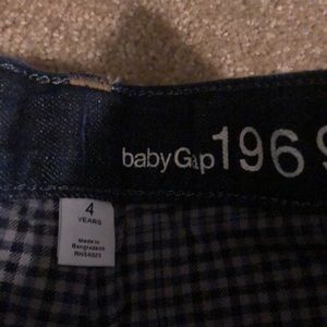 Used pair of janie and Jack brown courdoroys size 4 with adjustable waist. Used boy gap jeans 1969 size 4 with adjustable waist. Jeans are lined and soft. Both pants good for winter months. Good condition.