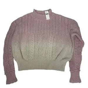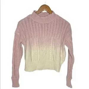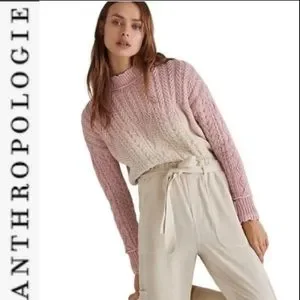 Final Price NWT Anthropologie Marci Dip dyed Cable knit Sweater pink/cr Ombre S