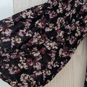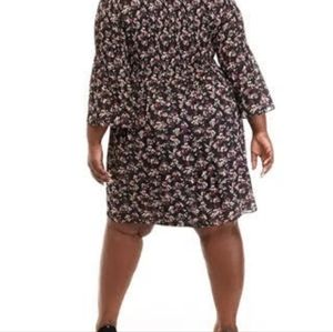 Beautiful black floral dress by Emma & Michelle. Size 2X. 100%polyester. The body of the dress is completely lined. Feminine bell sleeves. Please note that the photo of the sleeve shows the most accurate representation of the colors in the dress. Excellent used condition, worn only once. Very clean, smoke free, pet free home.
