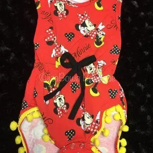 Super Cute Pom Pom Romper in Minnie Mouse Print.